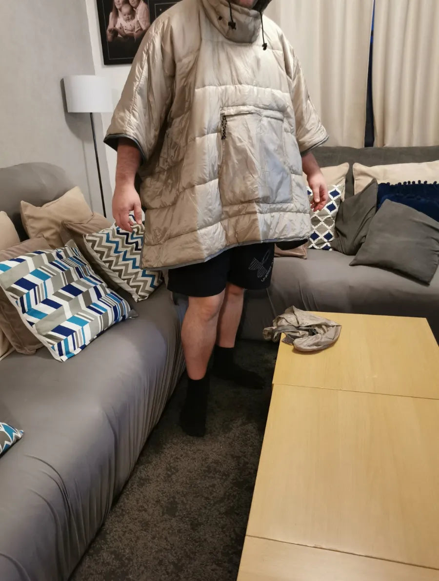 "OMG!! This poncho-sleeping bag combo is a lifesaver. Kept me super warm during our camping trip, and it's so easy to pack. Love love love it!!! And the material feels luxurious. Perfect for winter adventures or just chilling at home. 100% recommend!!"